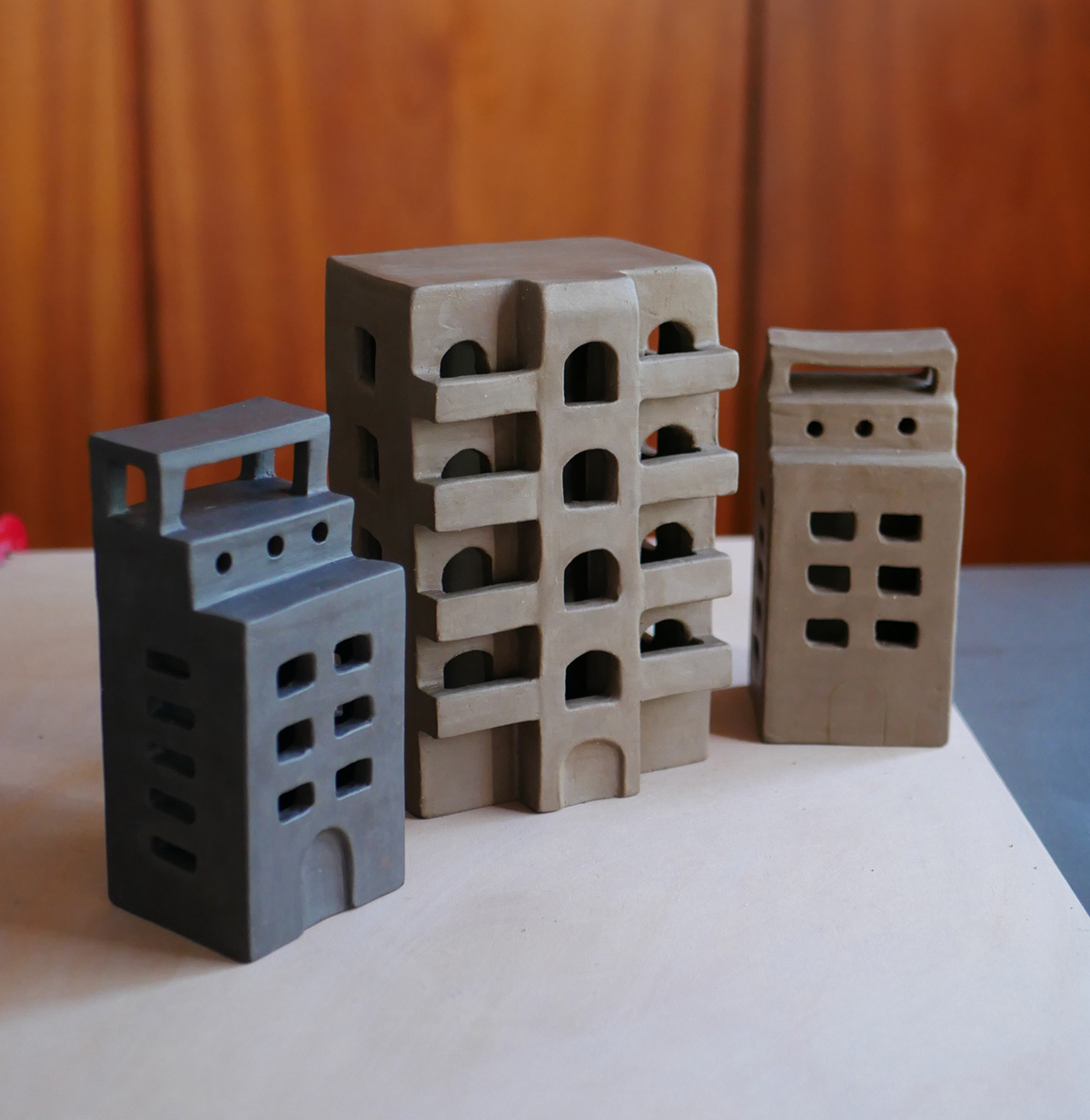 "Capovila" é uma série de esculturas em homenagem aos predinhos antigos, pequenos, preciosidades que resistem na metrópole em constante transformação/destruição. Cada um é inspirado em um predinho do Centro de São Paulo e arredores, construídos entre os anos 60 e 80.